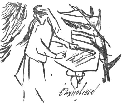 Весело. Мечты. Сижу в даче. Сижу на дощатом полу, под окном. На громадном листе серой бумаги рисую музыку Рахманинова, разметавшуюся ветвями, а за окнами будет бегать дорожка, липнуть к следам песок.