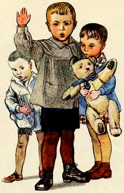Советские ребята читают и перечитывают чудесные, то трогательные, то забавные и необыкновенно милые стихи, которые поэт написал для маленьких.
