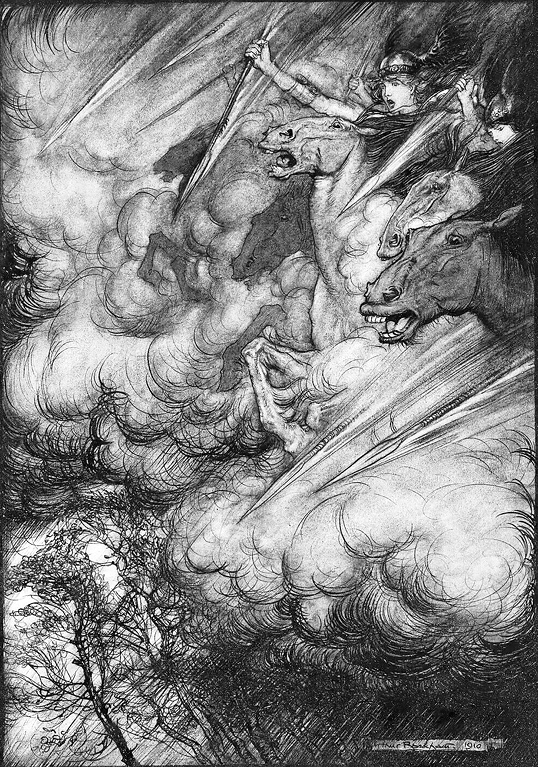 К с. 550. Иллюстрация (1910) А. Рэкхема к опере Р. Вагнера «Валькирия»