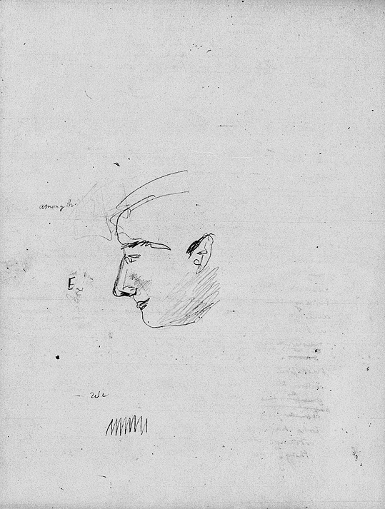 Рисунок Набокова в рукописи романа (после с. 68). Предположительно, портрет Эмбера
