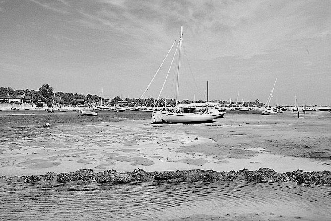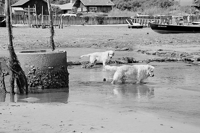 Почувствовал. Потом на тракторе поехал в объезд части залива, чтобы выйти к отмели, где находятся садки Катрин Ру. Не знал, что устрица-ребенок похожа на гальку, если не знать – не догадаешься. Посмотрел на садки, уходящие далеко в океан, потом пошел назад, прямо через обнаженное дно залива, благодаря тому, что был в высоких резиновых сапогах из хозяйства Катри Ру. То там, то сям виднелись корпуса лежавших на боку парусных лодок. Кое-где вода не ушла, образовав довольно большие заводи. В одной два золотистых ретривера ловили рыбу. Я так засмотрелся на них, что забыл наставление Катрин смотреть в оба. И не сходить с «тропинки», ведущей к ее устричному магазинчику, а то можно угодить в бездонную черную засасывающую липкую грязь. И попал одной ногой. Еле выбрался.