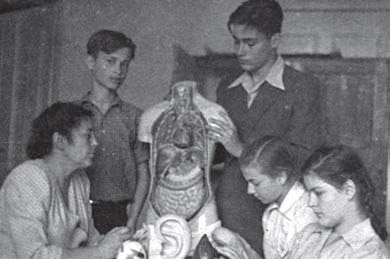 Урок анатомии ведет Надежда Исидоровна Жаркова, благодаря которой я решил стать биологом. 1951 г.
