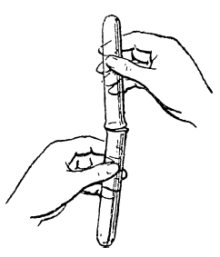 Наполнив под водой одну из пробирок водородом, берем другую «пустую», то есть наполненную воздухом, и, держа последнюю отверстием вниз, ставим ее рядом с первой. Теперь пробирку с водородом быстро переворачиваем вверх отверстием так, чтобы оно пришлось как раз под отверстием второй пробирки (рис. 12). Если опыт удался, легкая вспышка при приближении второй пробирки к пламени спиртовой лампы покажет нам, что водород «перелился» в нее из первой пробирки. Известный навык, требующийся для такого опыта, приобретается после двух-трех упражнений.