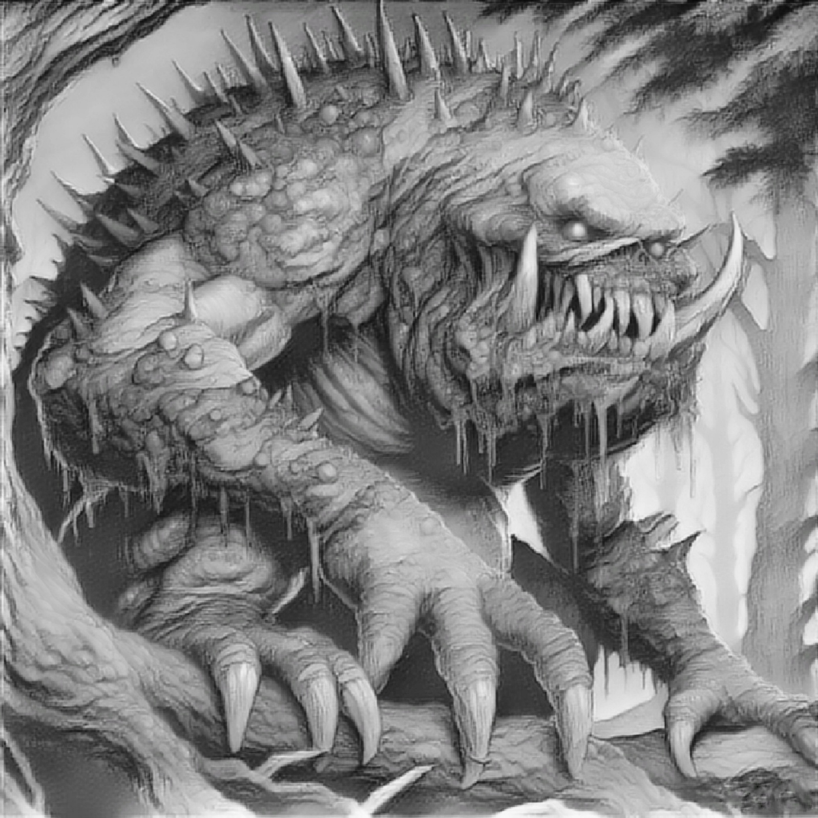 Все в нем было омерзительным: сгорбленное, болотного цвета тело с крючковатыми шипами по всей протяженности позвоночника и короткого мясистого хвоста; жесткая, прореженная шелушащимися проплешинами щетина; матово-желтые, загнутые, как бычьи рога, клыки; кряжистые задние и длинные, увенчанные зазубренными когтями, передние лапы.