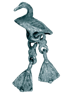 Шумящая орнитоморфная пронизка. IX – первая половина X вв. Латунь, литье. 7,4 x 1,3 x 3,4 см. ЧКМ № 3313/7.