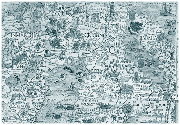 Биармия на карте Олафа Магнуса (в верхнем правом углу). 1539 г.