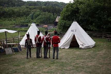 Красномундирники на фоне тех самых «колокольчиков». (Современная реконструкция)