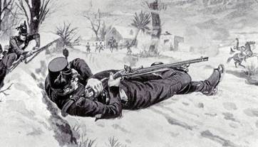 Снайпером надо родиться. 5 января 1809 года при отступлении к Корунье под Виллафранкой стрелок 95-го полка Томас Планкетт из такой вот не слишком удобной на взгляд современного человека позы убил наполеоновского генерала Франсуа Кольбера с расстояния 600(!) метров. Мало того, чтобы доказать, что удачный выстрел – результат мастерства, а не везения, Планкетт вернулся на позицию и второй пулей свалил французского майора, бросившегося к генералу. Два точных попадания с дистанции, в 12 раз превышающей дальность выстрела из мушкета!