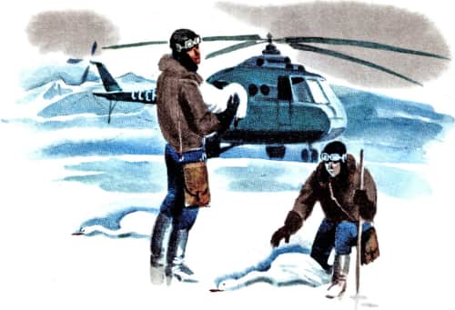 Посадил я вертолёт на берегу и пошёл с борттехником к той лебединой стае. А они, бедные, в лёд вмёрзли.