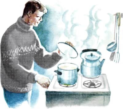 А как всё просто! Чиркнул спичкой, повернул кран – и горит, шумит весёлое голубое пламя.