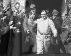 Юрий Гагарин выходит из самолета, забравшего его с места приземления космического корабля