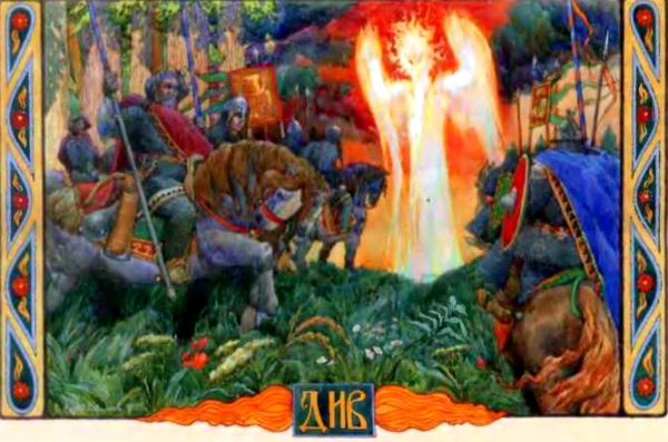 Старинные русские памятники говорят о поклонении богу Диву, и если в этом свидетельстве вероятнее видеть указание на светлое небесное божество, то все-таки не может быть сомнения, что уже в отдаленной древности со словом «дивы» связывалось понятие о драконах и великанах туч.