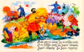 В одной из древнерусских летописей, например, есть миниатюра, где изображена сцена принесения клятвы дружиной князя Олега. Воины клянутся Перуном и Волосом, скотьим богом, но Перун изображен в виде человекообразного идола, а Волос – в виде змеи, лежащей у ног княжеских дружинников. Именно как противник громовержца Перуна Велес выступает иногда в виде существа змеиной породы. Видимо, отсюда произошли и эпитеты волоса «длинный», «извивающийся». В древнеевропейской мифологии эта идея отражала борьбу небесного начала – птицы и начала земного – змеи. Подобный сюжет можно встретить на многих изображениях в Египте, Иране, Индии, Вавилоне. Позже он перешел в борьбу птицы и коня против змеи и встречается в изображении египетского бога Гора с птичьей (соколиной) головой, сидящего на коне и поражающего змея копьем, а на Руси – в образе святого Георгия на коне, убивающего змея. По существу во всех случаях здесь налицо изображение извечной борьбы духовного и материального начал, а также небесного и земного, которая происходит и внутри человека – борьба его духа и плоти и, кроме того, выражение борьбы добра и зла в их самых общих проявлениях.