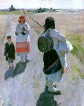«За могильною горою стоит белая избушка Белуна. Белун – старик добрый. С рассветом рано отправлялся Белун в поле. Высокий, весь белый, ходит он все утро по росистой меже, охранял каждый колос. В полдень шел Белун на пчельник, а когда спадала жара, опять возвращался на поле. Только вечером поздно приходил Белун в свою избушку».