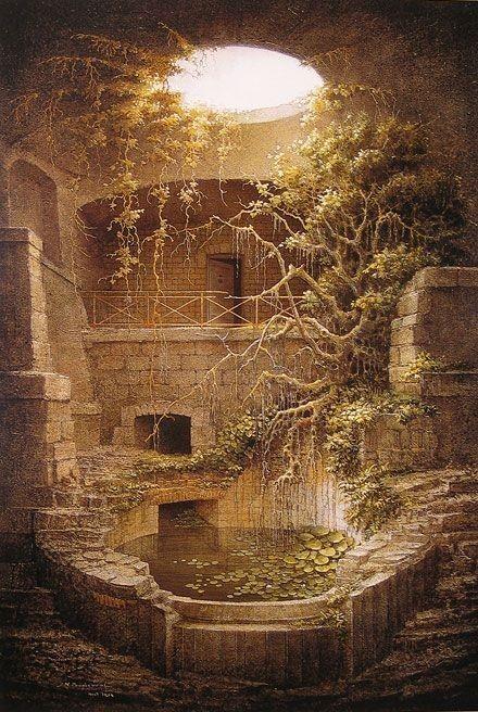 В этот раз, для разнообразия, никто меня в кровати не подкарауливал. Стена за нашими спинами со скрипом стала подниматься, но все отнеслись к этому индифферентно – возвращаться в сырое подземелье никто не торопился. Мы попали в нечто, сильно напоминающее внутренний дворик обычного местного городского дома В силу ограниченности места, дома в городах часто строили очень плотно. Но воздуха и солнышка хотелось. Поэтому местные делали крохотные внутренние дворики, патио. Пара лавочек, на которые могут присесть старики, обязательно резервуар с водой посередине, клумба или несколько горшков с цветами. Свет попадал в такие дворики сверху, давая достаточно тени. Все двери из комнат дома выходили в такой патио. В какой-то степени и поместье Итвис повторяло такую традиционную планировку, разве что с поправкой на размеры и безопасность.