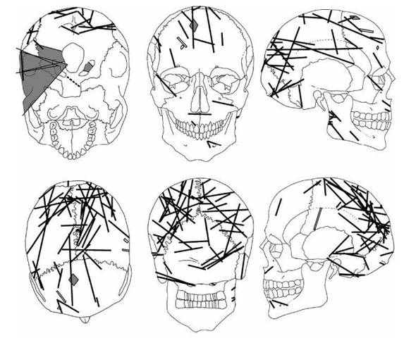 Есть любопытная тенденция для всех захоронений – абсолютное большинство травм приходится на голову, исключение составляет разве что скелеты с кладбища Fishergate, которые имеют большой процент травм на ребрах и грудной клетке Исследователи объясняют это меньшей распространенностью защитного вооружения среди погребённых там. Но есть еще один неразрешенный вопрос, возможно, уже обратили на него внимание – если ран на теле нет, потому что оно было надежно защищено доспехами, то почему столько пробитых черепов, неужели они не использовали шлемы? На самом деле, хорошего ответа здесь нет – исследователи выдвигали разные гипотезы, но все они уязвимы для критики: