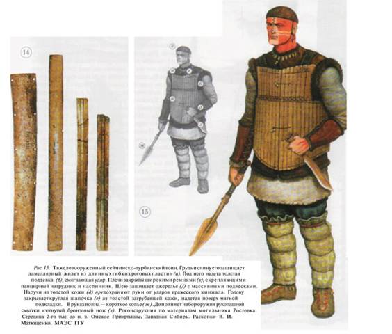 Сами по себе доспехи такая штука, которую люди начали делать даже раньше чем колеса. Ну и, чего греха таить, применяли они их пожалуй даже чаще чем может показаться нам, их цивилизованным потомкам. Просто подавляющее число доспехов до нас не дошли, поскольку были сделаны из материалов, не вполне подходящих, для долгого хранения. Например из шкур и дерева, как эти, сибирские, 3500 лет назад: