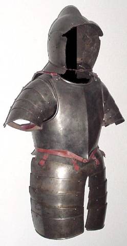 Однако аркебуза не справлялась. Все таки порох был не тот, да и даже нищая пехота массово обряжалась в казенные латы. Примерно в такие как на картинке ниже.