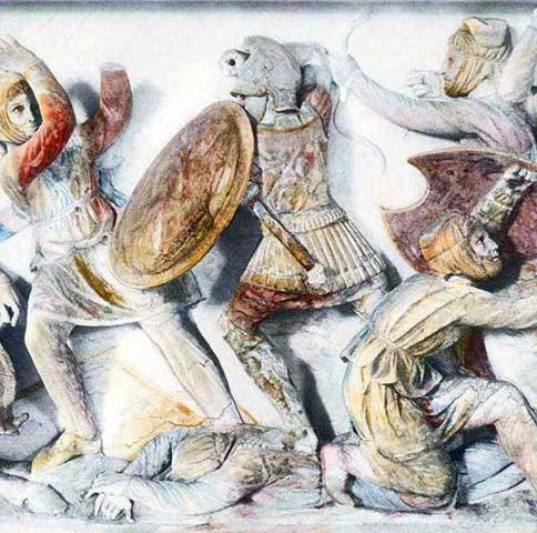 Это перерисовка с так называемого «саркофага Александра» (гуглить «Сидонский саркофаг», там насыщенная история датировок и предположений, кому он принадлежал на самом деле).