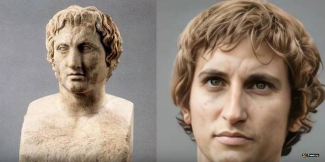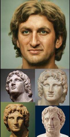 На самом деле в этой реконструкции пытались передать динарский тип лица (прямая логика, если сегодня на балканах динарцы доминируют, то логично, что Македонский был того же типа). Ладно, тут даже волосы чет не похожи. Несу следующего Александра: