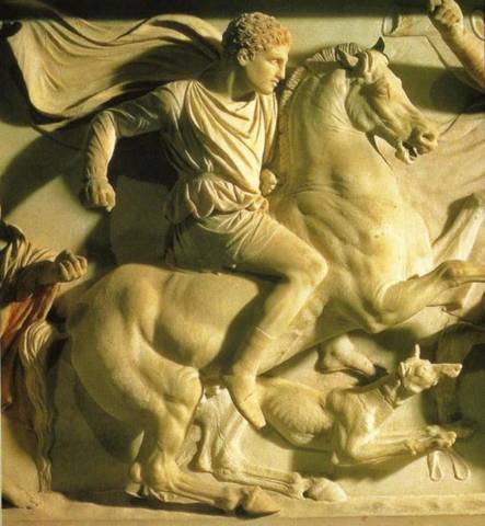 Хотя знаменитый конь Александра Македонского, Буцефал, у всех на слуху, единственный, кто кроме него и самого Александра удостоился чести дать свое имя основанным Александром городам, был боевой пес Александра, по кличке Перитас. Перитас пал смертью храбрых в битве при Гавгамелах, спасая Александра от слона (так по крайней мере в источнике), там есть еще трогательная строчка о том, что Александр, привыкший к смерти друзей и родственников, на могиле Перитаса не выдержал и пустил слезу.