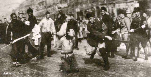 Изогнутый большой меч дао (дадао) использовался в Китае не только в качестве боевого оружия, но и в качестве орудия казни. На фото гоминьдановец одним ударом тяжелого клинка обезглавливает китайского коммуниста (поистине, нет ничего страшнее гражданской войны, когда ненависть граждан одной страны к друг-другу просто зашкаливает…), 1927 год.