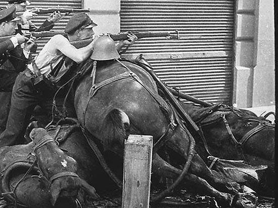 Но тут, вдруг, оказалось – плохих прям очень много. Это не проблема, самоотверженные патриоты поубивали бы всех. Но у плохих людей еще и хватило подлости сопротивляться. Кажется, на это никто не рассчитывал. Власти Республики начали раздавать оружие населению, население не торопилось вставать под знамена мятежников – мятеж перестал быть теплым и ламповым. На фотографии ниже – на улице города граждане, одурманенные бузотерами, с оружием руках, не хотят возвращаться в монархический рай. Красных курток провокаторов с этого ракурса не видно, но они там наверняка есть (это внутренняя шутка для граждан Казахстана).