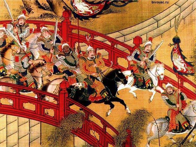 На гаврюре ниже, всадники гвардии императора Джиаджинга династии Мин (1522–1567), вооруженные одним из ранних вариантов изогнутого большого меча дао (дадао).