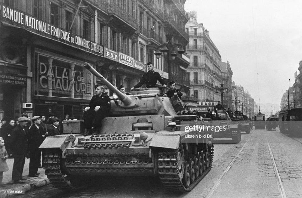 В атаку их пошло много, 21 штука. И тут оказалось, что у немцев есть Pz.III и Pz.IV. Которые либо очень удачно подошли, либо ловко спрятаны в засаду. На фото Pz.Kpfw.III в Марселе.