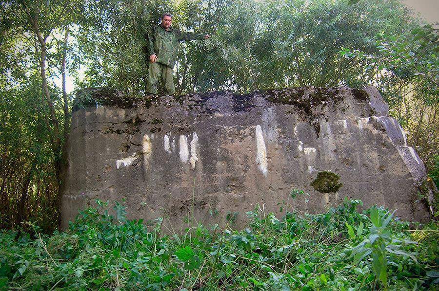По фото видно, почему было так важно удержать этот рубеж – речка могла стать отличным рубежом обороны. На следующее утро группа «Зекендорф» доложилась, что мост она у русских отбила. Сейчас этого моста нет. На фото остатки опоры, на которых сам Коломиец, для масштаба. Да, человек поехал и пощупал там всё ручками, не только в бумажках зарылся.