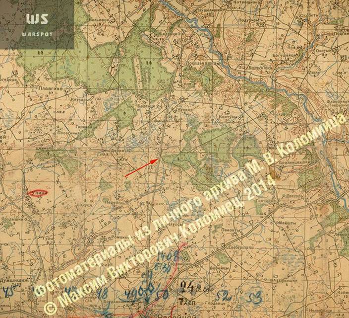 Давайте немного коснемся знаменитого рассеняйского КВ. По документам немецким значится, что он вышел на дорогу примерно в 12:00 24 июня. Причем они пишут, что одно из чудовищ выехало на дорогу, рядом с командным пунктом, расстреляло два грузовика и осталось стоять прямо посреди дороги. Вот это место: