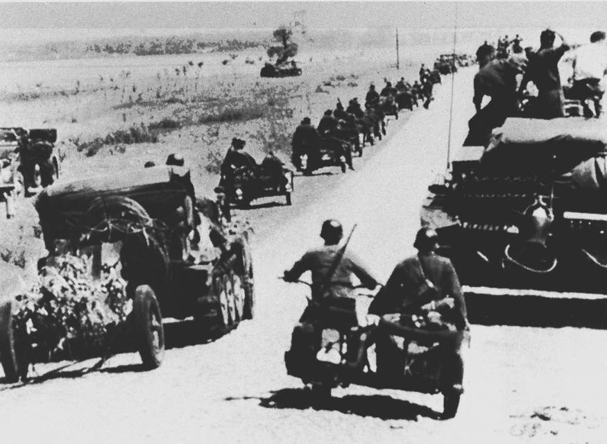 Второй ингредиент – сами по себе моторизированные соединения. Трудно уязвимые для пехоты танки, при поддержке самоходных орудий и доставленная на грузовиках мотопехота (панцергренадеры, по терминологии вермахта). Впереди идет нечувствительная к пулеметнооружейному огню и осколкам от артиллерийского обстрела бронегруппа с пехотой в броневиках. Бронегруппа бывала самого разного состава, но всегда подвижная и мощная, нацеленная не столько на штурм, сколько на поиск уязвимых мест в обороне врага. Нельзя везде поставить противотанковые пушки. Да даже если и окажется вся противотанковая артиллерия советской стрелковой дивизии (12 «сорокопяток» по штату 1939-го года) на направлении главного удара бронированного кулака, то что? Благодаря скоростным тягачам с артиллерией, не отстающих от танков, авиации и пехоте моторизированные части вермахта, и уж тем более танковые дивизии, попросту нивелируют такое препятствие. Сравняют до уровня земли, если говорить прямо.