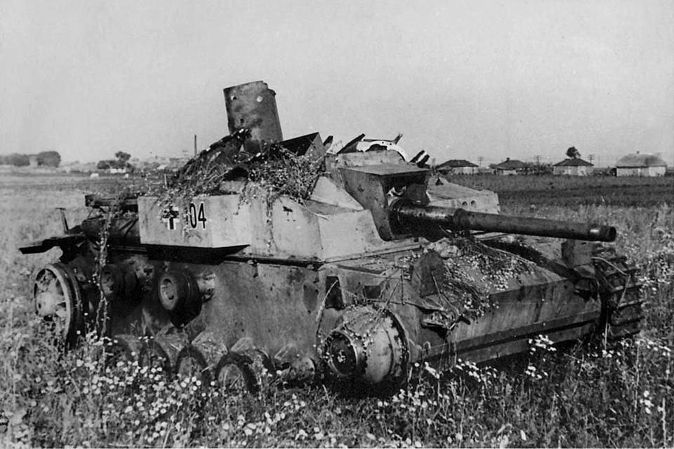 В панике, стремясь выбраться из под обстрела, немецкие танки и самоходки заметались, давя своих залегших пехотинцев, путая направление. Одна самоходка выскочила на позиции усиленного взвода и оказавшись без прикрытия пехоты, тут же из смертоносного хищника превратилась в добычу. Получив бутылку с зажигательной смесью на лобовую броню, самоходка не потеряла ход, и попыталась уползти обратно задним ходом. И тут взрыв противотанковой гранаты под брюхом сорвал ей каток и выломал часть траков. Разматывая гусеницу, самоходка доползла до склона лощины, наполовину сползла в него, и застыла.
