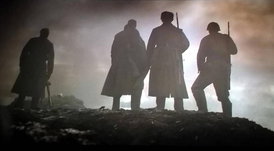 Все мертвецы одеты в немецкую форму. Русский только один, и он все еще жив. Весь в крови, израненный, изрезанный, он методично и хладнокровно забивает противотанковой гранатой солдата вермахта. Тот все еще пытается отбиваться, но судя по бьющемуся в агонии у его ног второму немецкому солдату, он не справился и когда был не один.