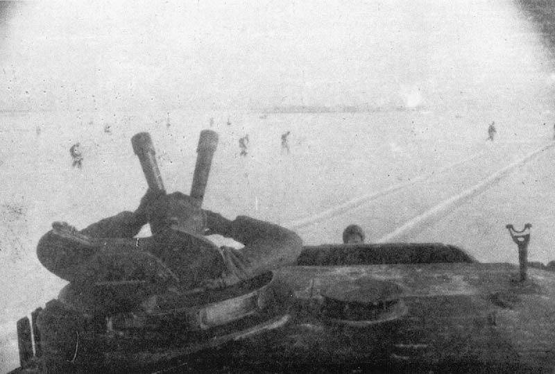 Панцергренадеры, прячась за кормой ползущих впереди них танков, идут вперед. В этот раз русские позиции молчат.