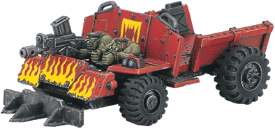 Тачила у Киллы Ван Киллы была не так уж и плоха. Хоть она и была не полностью покрашена в красный (а все орки знают, что красное ездит быстрее) она оставила далеко позади почти все машины преследователей. Возможно, дело в том, что Килла не успел установить на неё странные и тяжелые приспособления для ломания, стрельбы, и даже абордажа вражеской техники. Без таких важных вещей не могла обойтись ни одна, по настоящему крутая, орочья тачила. Так или иначе, от преследующей их колонны, на хвосте у Киллы и ватаги оставалось всего несколько тяжелобронированных варбайков и одна тачила примерно такого же размера.