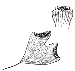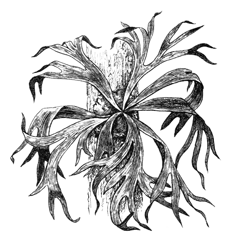 Отогнутые верхние части стерильных листьев, нижние части которых тесно срослись с вросшим в кору ветвей или стволов корневищем всего папоротника, образуют нишу.