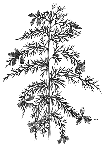 На третьем, подводном листе развиваются органы спороношения. Среди тоненьких нитевидных выростов, погруженных в воду, хорошо различимы гроздья шаровидных замкнутых сорусов, в которых заключены спорангии со спорами.