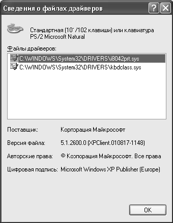 На рис. 2.2 показан список драйверов, имеющих цифровую подпись Microsoft. На рис. 2.3 приведен пример неподписанного файла драйвера.
