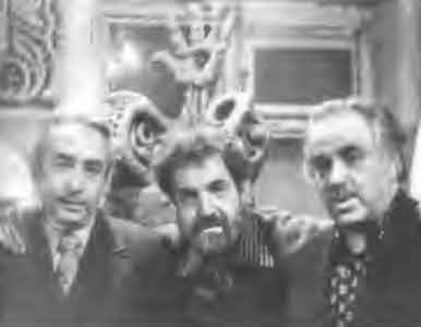 Трое друзей под сенью статуи Пророка в Подвале Надима Сидура. В. Бахнов, В. Сидур, Н. Гребнев