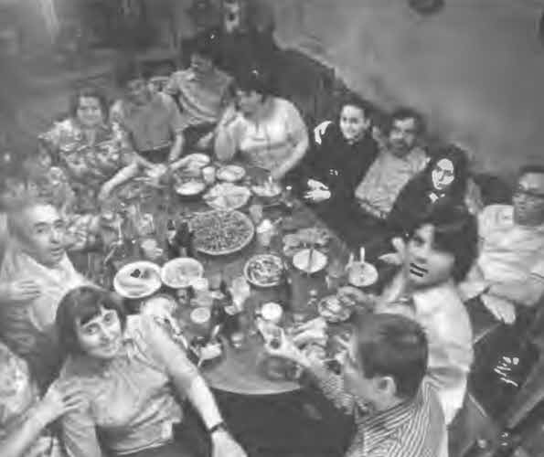 …а за столом у друзей – Руфины и Миши Гинзбургов (на переднем плане) – в поредевшем кругу, надо «держать площадку» и смешить…