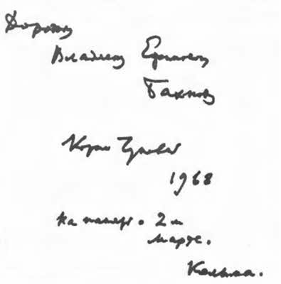 Дарственная надпись К. И. Чуковского на книге «О Чехове»