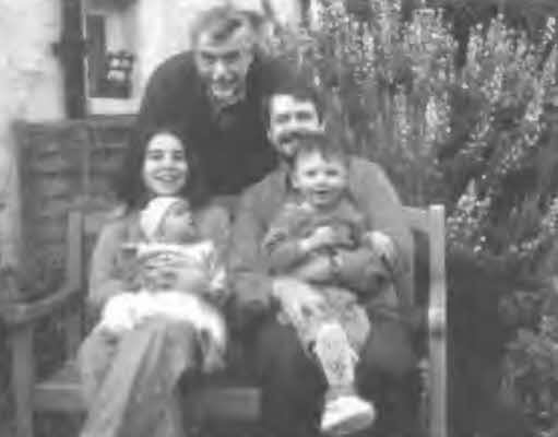 Потомство в Англии. Сидят: Полина (внучка), Майкл (ее муж), Нэт и Сэмми (правнуки). Стоит сын Леонид (в гостях). Пригород Лондона