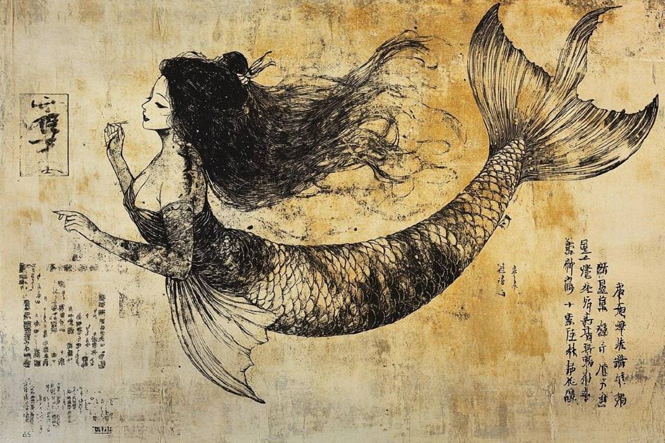 Нингё это японская русалка с лицом девушки и телом рыбы. Это я сразу вспомнил из бестиария, который не зря перечитывал много раз. Нингё безобидна, но если ей навредить, но можно навлечь на всю округу страшные беды в виде наводнений или смерчей.