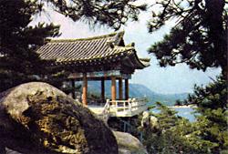 Оглушительно звенят цикады, шумит, сбегая в долину, горный поток, совершенно прозрачный на перекатах и зеленоватый, где в глубокой воде отражаются горы. Тут и там на скалах, на скатившихся с гор глыбах видишь цепочки иероглифов. Их оставили еще до освобождения Кореи богатые туристы-японцы и местная буржуазия. К. перевалам туристов поднимали в носилках местные крестьяне и тем зарабатывали себе на миску риса. Менялись правители, власти, но неизменной оставалась тяжелая доля простого люда.