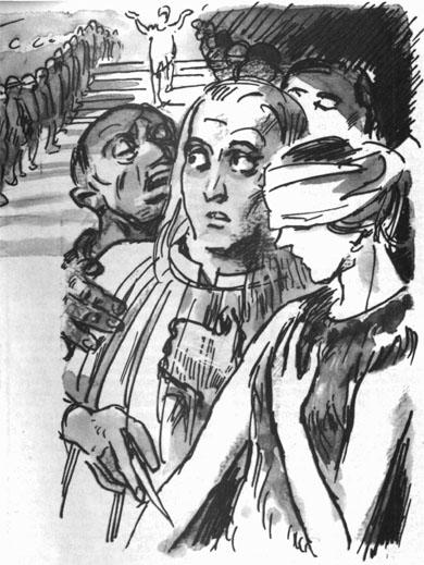 Великий пастырь шел вдоль рядов верующих. Стали слышны вскрики, стоны, бормотание.