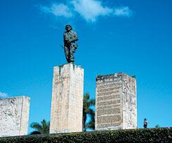 На горизонте появляется громадная бронзовая фигура Че Гевары с автоматом в руке. Это Санта-Клара. Здесь отряд легендарного команданте нанес правительственным войскам решающий удар: пустил под откос бронепоезд – последнюю надежду Батисты – и с боем взял город. Санта-Клара за 200 лет своей истории не знала таких потрясений. Аргентинца Эрнесто Че Гевару встречали как освободителя. Когда в 1997 году, через 30 лет после гибели самого популярного в мире революционера, его останки были найдены в братской могиле в Боливии, никто не оспаривал у этого кубинского города права захоронить их на своей земле. В мавзолее горит вечный огонь. Из динамиков несется вечная песня о команданте.