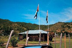 Из поселка Санто-Доминго мы еще три километра пешком поднимались в гору до генерального штаба повстанцев «Ла-Плата». На втором году партизанщины барбудос тут обустроились основательно. Музейный комплекс «Бастион революции» включает, помимо десятка жилых домиков, лепящихся по скалам, швейную мастерскую для пошива партизанской формы, дом Фиделя, собственно музей (в точности повторяющий вышеописанный) и радиостанцию, которая начала вещание 24 февраля 1958 года.
