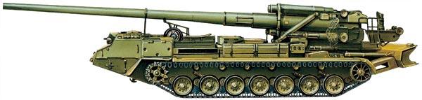 203-мм самоходная пушка 2С7 «Пион», СССР. Длина ствола – 50 калибров, масса 49 т, максимальная дальность стрельбы активнореактивным осколочнофугасным снарядом (102 кг) – до 55 км, экипаж – 7 человек