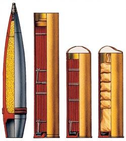 Далеко не исчерпаны и возможности увеличения могущества действия снарядов у цели в пределах тех же калибров. Скажем, американский 155-мм снаряд М795 снабжен корпусом из стали улучшенной дроблимости, дающим при разрыве меньше слишком крупных осколков с малой скоростью разлета и бесполезной мелкой «пыли». В южноафриканском ХМ9759А1 это дополнено заданным дроблением корпуса (полуготовые осколки) и взрывателем с программируемой высотой разрыва.